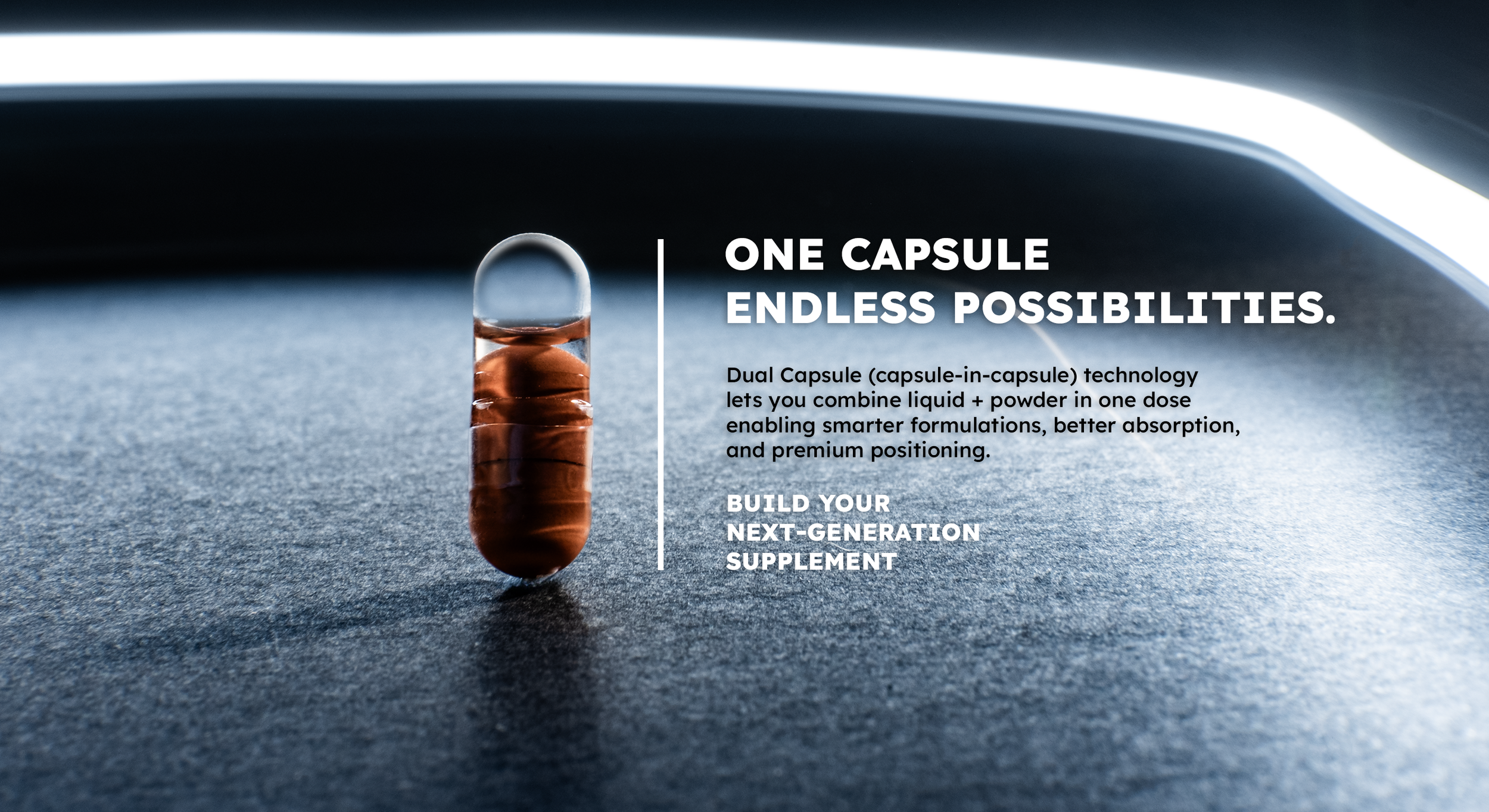 Outer liquid → fast absorption (e.g. caffeine, adaptogens)